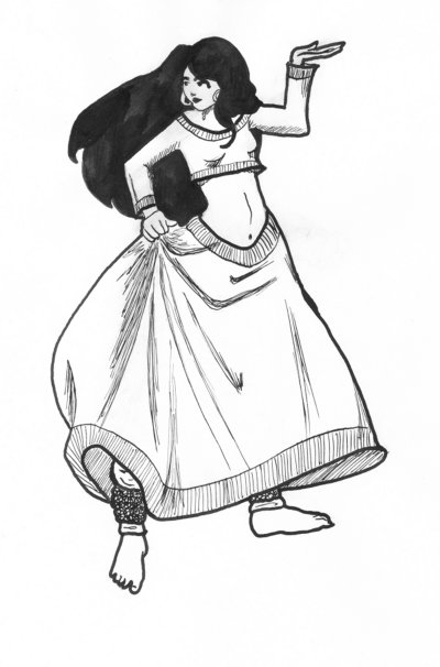 I work with pencils, colored pencils, pen and/or brush and india ink, susumi ink and brush, markers, etc. I work with both black ink and colored ink. I draw and paint free hand with ink, as well as "inking" already existing pencils.