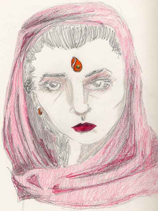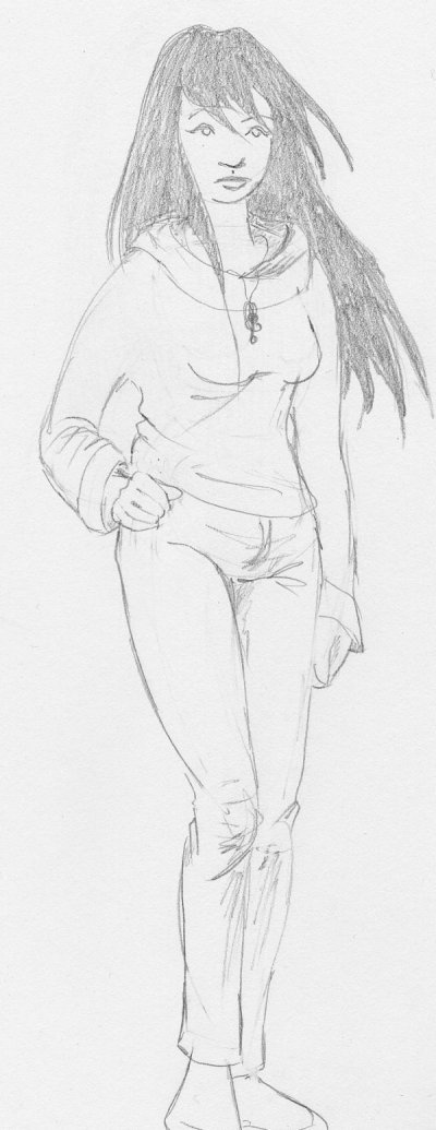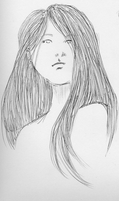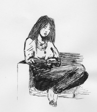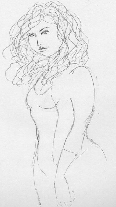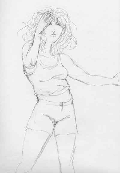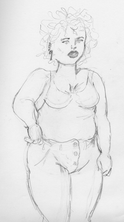 "Venus of Pompeii," pencil. Quick sketch of a young woman I met outside the bathrooms at Pompeii on Taylor Street.