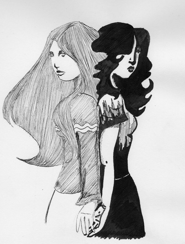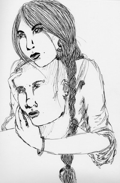 "Yin/Yang," a study of friendship. Ink over pencils.
