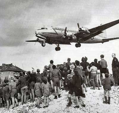 Truman convocó a los aliados a una reunión urgente. el lado occidental de Berlín contaba con suministros para unos 10 días, tras los cuales sus habitantes o adquirían lo que necesitaban del lado oriental o se morirían de hambre. El plan de Moscú era claro y obvio: liquidar a la orgullosa capital alemana ante los ojos condescendientes de los demás aliados. La única opción era transportar los bienes por vía aérea, aun a riesgo de que los soviéticos dispararan desde tierra. El 24 de junio comenzó la operación: aviones británicos, norteamericanos, australianos, Nueva Zelanda y algunos canadienses implantaron el puente aéreo con Berlín. Desde el Kremlin podían escucharse el rechinar de dientes y el coraje de Stalin y de su gabinete. La estrategia conjunta de Washington y Londres funcionó pues ningún avión fue derribado aunque hubo otros que cayeron a tierra debido al sobrecargo.
