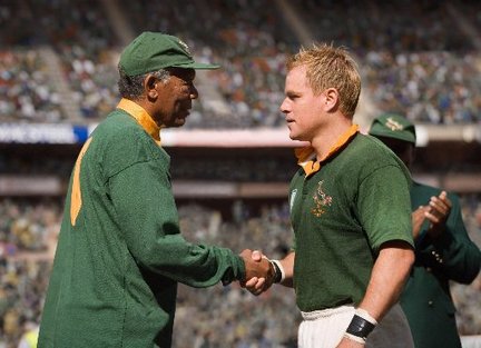 Nóbel, cuando éste aún otorgaba cierto prestigio). La abolición del apartheid aún es reciente y mantiene vivos los rencores y las tensiones raciales, lo que hace peligrar la estabilidad de un país al que el resto del mundo mira entre nerviosismo y admiración. El Mandela que se nos presenta aquí es tan carismático como certero, siempre conciliador, siempre detrás de un ideal claro y predefinido. Ante ese caldero sólo parece existir un posible factor de unidad, representado en el rugby, deporte que detesta la mayoría negra pero que ahora, milagrosamente y en una sociedad