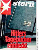 Wolf Hess (der), hijo de Rudolph Hess. Fraude evidente Stern publica "los diarios" de Adolfo Hitler JULIO, 2006. Decenas de víctimas del nazismo dejaron escritos sus momentos de horror, esperanza y sentimientos ante la proximidad de la muerte y aun el amor, como fue el caso del conmovedor diario de Ana Frank. Los victimarios también tenían por costumbre llevar sus apuntes, como ocurrió con Joseph Goebbels, ministro de Propaganda nazi, y Heinrich Himmler, autor ejecutor de la infame "solución final". De los cinco protagonistas de esta guerra (Roosevelt, Churchill, Stalin, Mussolini y Hitler) del primero quedaron bastante discursos pero no tuvo tiempo de escribir sus memorias, las cuales el segundo publicó poco después de terminada la guerra; el soviético también publicó las suyas, poco creíbles dado su exacerbado autoculto a la personalidad; del Duce también existen suficientes documentos y del führer, naturalmente, está Mein Kampf, con la diferencia de haber sido escrita antes de la guerra y que serviría como motor para eliminar a casi 50 millones de personas. Durante mucho tiempo se ha creído que Hitler también llevaba un diario que quedó sepultado bajo los escombros del búnker berlinés. Su amante Eva Braun tenía su bitácora personal de la que se recuperaron algunas páginas que sirven para describir a Hitler en la intimidad. Ya se había perdido toda posibilidad de encontrar los diarios del dictador hasta que en 1983 el semanario alemán Stern dio la noticia: ¡éstos habían aparecido, de los cuales la revista iba a publicar algunos extractos! Era el 25 de abril. Según la nota, los diarios, finamente encuadernados, habían sido encontrados en una granja de la entonces Alemania Oriental tras 28 años de permanecer ocultos. Ahí se logró llevarlos de contrabando al lado occidental donde Stern los compró. El descubrimiento se antojaba espectacular; por fin el mundo sabría, de primera mano, que pensaba el führer en esa mente tan cruel y despiadada y qué motivos lo llevaron, independientemente de su fanatismo racial, a ordenar la muerte de millones de inocentes. Stern publicó la primera parte de los diarios en 1983 y aunque al principio hubo mucha controversia, los expertos en la vida de Hitler mostraron su reticencia en torno a su autenticidad. "Hay una parte donde (Hitler) se refiere a Goebbels como "un cerdo", lo cual es improbable; él no solía adjetivar a su gabinete, además que tampoco existen registros de enojos o insultos hacia Hitler en los diarios de Goebbels", dijo un biógrafo. Otra duda es que los diarios aportaban pocas novedades o detalles no conocidos de Hitler; muchos de ellos parecían haber sido calcados del Mein Kampf. Pero el detalle que más hizo dudar a los críticos: la rúbrica. Al principio se identificó como "Dr. Fischer" a la persona que había vendido a Stern los diarios y por los cuales se había embolsado 9.9 millones de dólares. El "doctor" era en un realidad un tan Konrad Kujau, un individuo que coleccionada y vendía memorabilia nazi en Stuttgart. De acuerdo a su versión, los diarios habían sido rescatados de un avión en llamas en Dresden y durante mucho tiempo permanecieron en Alemania Democrática hasta que Fischer-Kusau pudo contrabandearlos al lado federal. Una vez que el reportero Gerd Heldemann se enteró del asunto, los "diarios" fueron adquiridos por Stern para ser publicados en partes. Newsweek y The Sunday Times también adquirieron los derechos de lo que parecía ser "un documento clave" de una de las mentes más siniestras del siglo XX.