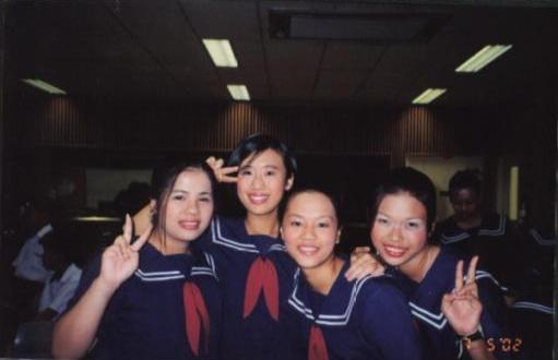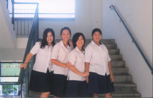 | BEFORE GOING ONTO STAGE... OUR IMPORTANT CHOIR MEMBERS HAD FINISH MAKING UP AND WAITING TO GET CHANGED INTO OUR LOWER SECONDARY UNIFORM... CONNY, JESSIE, HUI YING AND HUI YAN TRYING TO TAKE SOME PICS TO MEMORATE THIS DAY!!! |