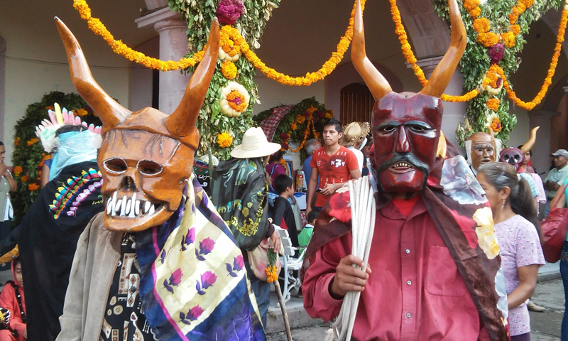 Una de las costumbres de los huastecos es que los domingos son días de plaza. Los nahuas de las serranías cercanas, bajan a vender carne seca, café en polvo, tabaco seco en hojas, morrales, tiras con fino bordado, cestas y diversos productos agrícolas. Los días primero y dos de noviembre se celebra en la región el día de muertos, de gran importancia huasteca. En este día, los hombres se disfrazan de diversos personajes, entre ellos la muerte y el diablo, y al son de la jarana bailan por las calles hasta llegar al cementerio, donde se quitan la máscara y bailan a los muertos en representación de que ya no tienen nada que esconder a los muertos. ![]()
