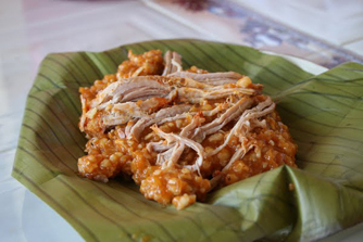 Algunos ejemplos de cocina mazateca, ahora veracruzana, son: el pilte de pollo o de pescado, caldo de pata de res, mondongo (pancita) asado en mole amarillo, tesmole, frijol con yerbamora, la misma yerba guisada con ajonjolí y salsa de tepejilote. ![]()
