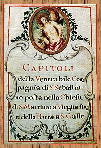 Vogliamo che per la festa di S. Sebastiano, i sacrestani ordinino il nostro luogo diligentemente, o che si dicano perlomeno quattro messe, cio� tre piane e una cantata. Che ogni fratello sia al luogo la mattina presto, per dire l'uffizio nostro con devozione senza dar tedio alla festa.