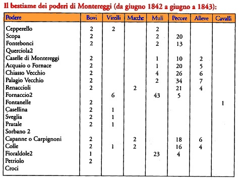 Inventario del bestiame interno della fattoria di Montereggi (anno 1836) redatto dall'agente Pietro Romoli