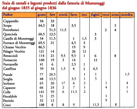 Analisi della produzione della fattoria (raccolti dal giugno 1835 al giugno 1836)