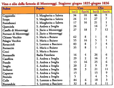 Pi� interessati a questa produzione erano i poderi della Querciola o Casa Nuova, Cepperello, Scopa, Fontebonci, Fioraldole, Fornaccio, Renaccioli, Sorbano, Capanne, Caselle.