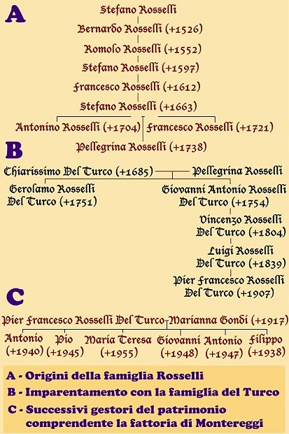 Non disponendo i Rosselli di eredi maschi, nominano loro erede patrimoniale Pellegrina, con la clausola per i Del Turco di assumerne il primo cognome dal 1723, divenendo Rosselli Del Turco.