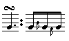G xxx ooo eighth note cut xox ooo G xxx ooo eighth note tap xxx xoo G xxx ooo eighth note Practice this very slowly and make sure the notes are coming out crisply and evenly. Remember, you're making three equal eighth notes. It's crucial that your rolls be as rhythmically precise as you can make them -- this is part of the snap and drive of the music. Practice rolls on E and F# (cutting with the left third finger), G (cutting with the left middle finger), and A and B (cutting with the left index finger). Whereas a long roll is applied to a dotted quarter note (dividing it into its three constituent eighth notes), a short roll is applied to a quarter note to divide it into two eighth notes. This is a little trickier because you have to start with a cut before the main note: ![]() cut xox ooo G xxx ooo eighth note tap xxx xoo G xxx ooo eighth note Since you're starting with a cut, it's easiest (and therefore common) to short-roll a note only if it comes at the beginning of a phrase or after a lower note. Because it's impossible to play a roll on D on the pipes, it has its own ornament: the crann. Legend has it that this technique was adapted to the flute by Matt Molloy; listening to his albums is probably the best way to hear how it sounds on the flute. Cranns are a bit more difficult than rolls, and they can sound muddled if they're not precise. Many accomplished flute players never use them. The basic idea of the crann is to break up a long D by inserting two or three cuts, each with a different finger. Different players might use different fingers for the cuts, or do them in a different order. The important thing is for the rhythm of the ornament to be as precise as possible. A short crann divides a D quarter note into two sixteenths and an eighth. This is done by inserting two cuts, as follows: ![]() D xxx xxx sixteenth note cut xxx oxx D xxx xxx sixteenth note cut xxx xox D xxx xxx eighth note This movement forms the core of the long crann, which happens on a D dotted quarter note. Simply cut one more time with the right index finger, adding another eighth note after the short crann: ![]() D xxx xxx sixteenth note cut xxx oxx D xxx xxx sixteenth note cut xxx xox D xxx xxx eighth note cut xxx oxx D xxx xxx eighth note As often as not, I tongue in lieu of the third cut. In reels and occasionally in hornpipes, you�ll often encounter a situation like the one below -- a short crann is preceeded by another D, which means adding another cut before the short-crann movement. I do it like this: ![]() A xxo ooo eighth note D xxx xxx eighth note cut xxo xxx D xxx xxx sixteenth note cut xxx oxx D xxx xxx sixteenth note cut xxx xox D xxx xxx eighth note Practice these very slowly and strive to get the rhythm as perfect as you can. When you crann the middle D, compare the oxxxxx fingering with xxxxxx. Cranning the former produces a hard crackling effect -- all the cuts are turned into C naturals -- whereas the latter is a little softer and less jagged. Many players also use cranns on E, using the same cuts described above. It can't be overstressed that you must have a clear idea of the timing and rhythm of your cranns and rolls in order to use them effectively. Long hours of listening and practice will definitely pay off in the long run. |