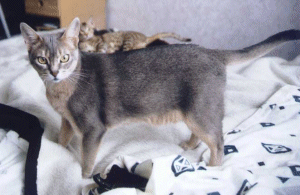 trazido da Eti�pia por Sir Robert Napier, tendo chegado � Gr�-Bretanha em 1868. Baptizado com o nome de Zula, foi exposto em 1871 no Crystal Palace de Londres. A partir de 1874, passa a ser o tema de um estudo ci�ntifico realizado por G. Stables. A ra�a, reconhecida em Inglaterra em 1882, foi fixada e apurada atrav�s de cruzamentos com o British Shorthair. O primeiro standard foi publicado em 1889 por H. Weir. O desenvolvimento da ra�a teve in�cio nos Estados Unidos, antes de 1910. Foi reconhecida em 1917 pela C.F.A.. Em 1926, foi criado o Abyssian Cat Club. Duas gatas, Aluna e Osira, nascidas em Viena, foram introduzidas em Fran�a em 1927. Nos anos 30, alguns cri8adores europeus concentraram-se na selec��o do Abiss�nio. Na sequ�ncia das duas Guerras Mundiais e da epidemia de leucemia felina, ocorrida entre 1960 e 1970, a ra�a quase desapareceu. Actualmente, o Abiss�nio faz parte das mais conhecidad e apreciadas ra�as de pelo curto. |