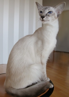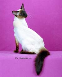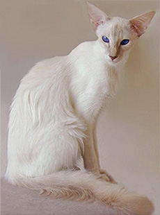 Um gato esbelto, sedoso e traquinas com olhos de um azul intenso. Pa�s de Origem : Estados Unidos. Designa��o de origem : Longhair Siamese, Balinese. Outra designa��o : Siam�s de pelo semi-longo |