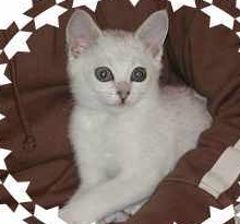 Olhos verdes numa pelagem branca prateada. Pa�s de Origem : Gr�-Bretanha. Outra designa��o : Burm�s Silver |