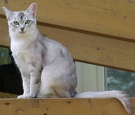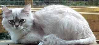 PELAGEM Pelo curto,, um pouco mais longo do que o Burm�s, fino, muito lustroso, sedoso, com sub-pelo suficiente para conferir um ligeiro volume. Cor : caracteristica do " tipping " ( apenas a extremidade do pelo � colorida), a qual � real�ada por um sub-pelo branco prateado. A cor base � Silver ou Golden e a extremidade do pelo pode ser zibelina, azul, chocolate, lil�s, ruivo, creme... O dorso, a m�scara e a cauda s�o mais escuros do que o abd�men. |