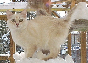 DEFEITOS Queixo pouco acentuado, olhos amendoados ou de cor incorrecta. Corpo " cobby " ou Oriental. Patas excessivamente altas. pelagem demasiado comprida ou eri�ada. Marcas " tabby " nas patas. |