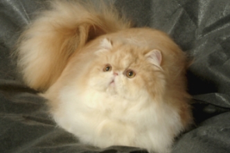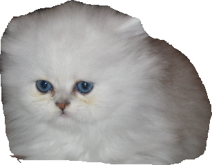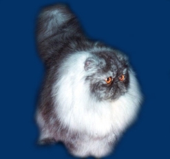 -- Persa Chinchila e derivados. Originado do cruzamento de um Persa Smoke com um Persa Silver Tabby. Aspecto geral do Persa cl�ssico, embora com um formato mais pequeno, mais brevil�neo e uma cabe�a menos maci�a. Pelagem muito clara com reflexos prateados. O " Tipping " ( pigmenta��o escura imitada � extremidade do pelo ) representa 1/8 do comprimento dos pelos de cobertura. A base do pelo � branca. Nariz vermelho tijolo, rodeado por uma tonalidade escura e olhos verdes. Derivados : Persa Silver Shaded : base do pelo branco puro. Tipping em 1/9 do comprimento do pelo ( nuance cor de estanho ). Referimo-nos � pelagem prateada sombreada. Persa Golden Shaded : base do pelo alperce, tipping preto. Pelagem denominada alperce sombreado ou dourado. |