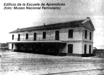 El Directorio había oportunamente adquirido un galpón existente en los saladeros junto al Riachuelo, que una vez desarmado, se trasladó a los talleres, siendo modificado convenientemente y montado como primer destino de la Escuela de Aprendices. Esta estaba dirigida por un profesor residente y concurrían jóvenes de once a quince años, que permanecían cinco años en el establecimiento (7). Contaba con dormitorios propios, ya que en su mayoría los jóvenes provenían del interior, viviendo a modo de pupilos. Amén de sus horas diarias de clase, la mayor parte del tiempo estaban ocupados en los talleres, cada uno al cuidado de un maestro operario. La administración les asignaba un sueldo diario, con el cual debían proveerse alimentación, vestimenta, etc. Si sobraba, era para el aprendiz; si faltaba, la bondad administrativa suplía la diferencia. En años sucesivos, el sueldo pasó a depender de la habilidad individual (8).