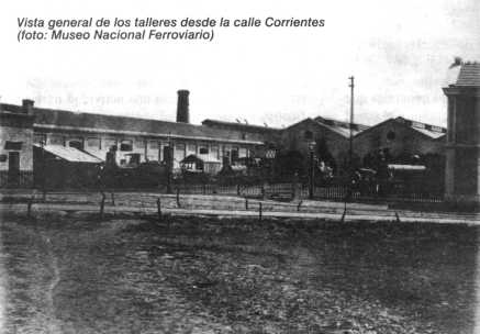 De todas maneras, el espacio destinado a los talleres era suficientemente extenso como para atender las necesidades del momento. El ala principal del edificio corría a lo largo de la calle Centro América, donde se hallaban en primer lugar la oficina del ingeniero jefe, luego la bodega, la tornería, la máquina a vapor, las fraguas y la fundición, en ese orden. Continuaban algunos galpones provisorios de madera para las secciones calderería, hojalatería y broncería. Más hacia el este se ubicaba el galpón mayor (de material y con techo de tejas) donde se estacionaban locomotoras, coches y vagones para reparación, y contiguo a éste otro similar de madera, ocupado por la carpintería. Haciendo frente a la calle Paso, había otro extenso galpón, usado como depósito de madera, material usual en las construcciones ferroviarias de la época. Finalmente hacia Corrientes se erigía un hermoso edificio de dos plantas, donde funcionaban, en la planta baja, la escuela de aprendices y las oficinas del Departamento de Tracción en la planta baja, desatinándose el piso superior para los dormitorios del personal. Resulta interesante la descripción de este establecimiento, que contribuyó decididamente a la introducción y el desarrollo de la mecánica moderna en materia ferroviaria. En primer lugar estaba el taller de tornería, donde había dos tornos mayores, un Beyer Peacock para ruedas grandes y otro Sharp Stewart para las menores. La operación de torneado de una rueda motriz de locomotora insumía por entonces de tres a cinco días. Para tornear diferentes piezas de metal se recurría a cuatro distintos tornos: un J. S. Huilse, un Amos J. G. Chicoppeck, un Smith & Peacock y otro más sin marca de fábrica. Existió incluso un quinto Sharp Stewart, más apropiado para cepillar. Había también una mortajadora H. Gielgud London y una cepilladora Sharp Stewart destinadas a las bielas motrices. Luego seguían los taladros, un Beyer Peacock y un Smiyh & Peacock y otro de gran tamaño de procedencia desconocida, que podía avanzar y girar a lo largo de un robusto eje horizontal. Hacia el final se hallaba la roscadora de tornillos Sharp Stewart. Debe mencionarse finalmente un pequeño aparato portátil para tornear superficies internas de los cilindros. Vale puntualizar que los antiguos tornos que poseía el Ferrocarril Oeste con anterioridad a éstos eran de movimiento alternativo, a pedal, siendo el operario quien debía aplicar su fuerza muscular para hacerlo funcionar.