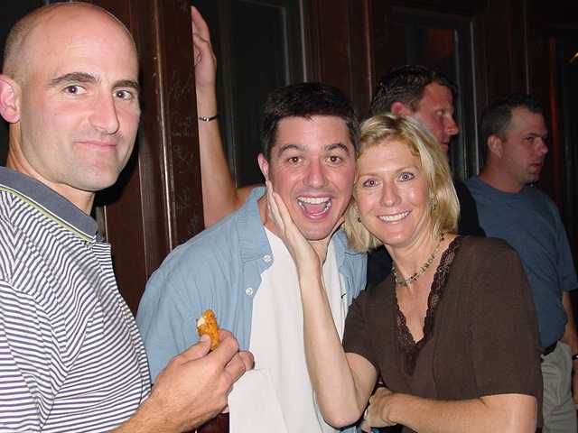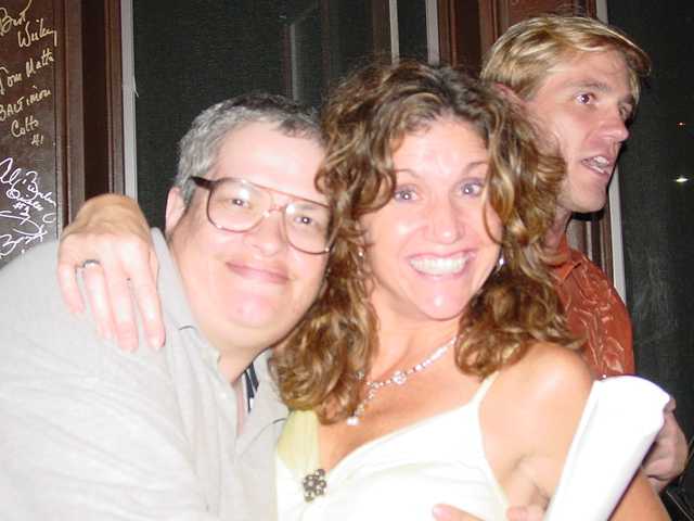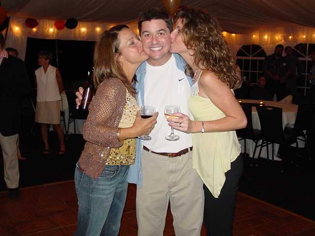 | Denise (Moran) Petronelli and Melanie (Appel) George laying big kisses on Keith Boyd! And what did Keith do to deserve this? |