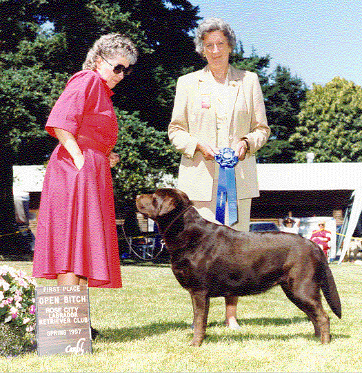 | Can. Ch. Fawnhaven Ishtar O'Ferncroft CD WC (C) 02-05-96 SN318854/04 11-98 OFA25G CERF32 Am. / Can. Ch. Cedarwood Gunner O'Fawnhaven CD SH (C) x Ruthless Black Shadow (Bc) |