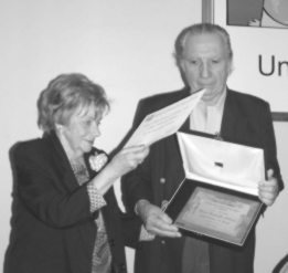 La poeta Rosa María Sobrón entrega a Rodolfo Alonso el Gran Premio