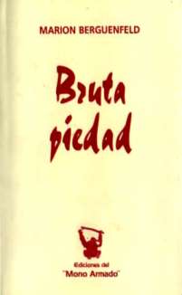 Bruta piedad por Marion Berguenfeld. Ediciones del "Mono Armado", Buenos Aires, 2004. 68 págs. "La sección última, que da título al conjunto, -dice Jorge Ariel Madrazzo- es una sorprendente y conmovedora épica del amor-deseo escoltado por la perra ternura. Bulle aquí la mágica contaminación de lo animal trascendente latiendo en una mujer, en un hombre. Humanitos que aman con rabia y desesperación, para que la muerte no gane la partida. "Querido Sócrates" es así, para este lector, uno de esos poemas perfectos ardidos por la pasión y la inteligencia." |