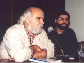 (Foto Daniel Grad) En la presentación del libro, el 28 de julio de 2006, se refirieron a la obra el escritor Juan Sasturain y el autor. En registro grabado se pudo disfrutar la voz de Juan Gelman, leyendo sus poemas. |