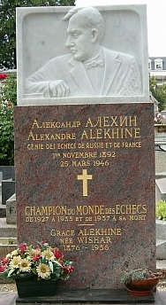 *Dikigoros nennt dieses Geburtsdatum nach julianischem Kalender - der damals in Rußland noch galt - weil es, anders als das des gregorianischen, unstreitig ist. Richtig umgerechnet wäre es der 31.10.1892; die Deppen, die Aljechins Grabstein verbrachen, berechneten es jedoch falsch und kamen so auf den 01.11.1892, der seitdem durch die Literatur geistert. (Auf dem Grabstein stand auch sonst viel Unfug. Die ursprünglichen Lebensdaten lauteten: "1. November 1891 - 25. März 1956". Die anderen Fehler wurden irgendwann korrigiert - einschließlich des Geburtsjahrs -, nicht aber der Geburtstag :-)
