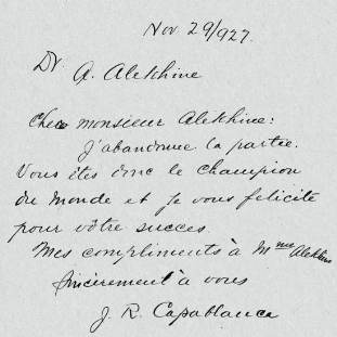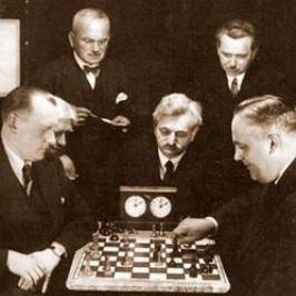 **Es gibt gute Gründe für die Annahme, daß das ursprünglich "Aljëchin" geschrieben, also "Aljochin" gesprochen wurde. Da Dikigoros jedoch kein Zeitgenosse war, der das hätte hören können, da er auch keine kyrillische Signatur gefunden hat (die ohnehin nicht viel besagen würde, da die Punkte über dem "ë" nicht mitgeschrieben werden müssen und daher oft weggelassen werden) und da A. sich nach seiner Emigration in den Westen unstreitig immer mit "e" schrieb, muß man das wohl respektieren. (Dikigoros gebraucht diese Vokabel ganz bewußt. Sie bedeutet für ihn weniger als "akzeptieren", aber mehr als "tolerieren".) ***Das ist bloß eine wörtliche Übersetzung, die nicht viel aussagt - zumal es diese Institution ja heute nicht mehr gibt. Auf jeden Fall war es eine Kaderschmiede, welche in etwa die Funktionen der preußischen "Hauptkadettenanstalt" (die Eleven trugen keine Schul-Uniform, wie an anderen höheren Bildungsanstalten im In- und Ausland, sondern Militär-Uniform), der US-amerikanischen "Law School" und der französischen "École Nationale d'Administration" in sich vereinte. Manche Historiker sprechen davon, daß dort ein "neuer Dienstadel" geschaffen werden sollte; das mag übertrieben sein, aber jedenfalls winkte den erfolgreichen Absolventen eine glänzende Karriere im Staatsdienst. ****Der Schach-Großmeister heißt auf Russisch bis heute "Grossmejster". Für alle anderen Titel hat man später englische Fremdwörter übernommen. (Dikigoros schreibt darüber an anderer Stelle mehr - dort in Fußnote 1). Wohlgemerkt nur die Titel. Mittelspiel heißt auch auf Russisch "Mitelschpil", Endspiel "Ändschpil", Zugzwang "Tsugtswang" und Zeitnot "Tsejtnot" [auf Weißrussisch "Tsäjtnot" geschrieben, bei gleicher Aussprache]. (Dikigoros erwähnt das, weil es nicht im Wörterbuch steht - jedenfalls nicht in seinem :-)