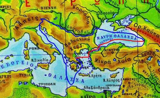 Beginnen wir also mit dem Kern der Thidrek-, pardon der Argonávtensage, den einige auf das 14., andere sogar bis auf das 20. Jahrhundert v.C. zurück datieren. Dikigoros schätzt sie dagegen auf das 8. Jahrhundert v.C. - warum? Das liegt doch auf der Hand: Ursprünglich sollte die Sage nur den Besitzanspruch der Griechen auf die südliche Schwarzmeerküste rechtfertigen, wo sie damals zahlreiche Kolonien anlegten, deren Städte z.T. noch heute erhalten sind; zugleich mußten sie erklären, warum diese Landnahme nicht über die erreichten Orte hinaus ging, d.h. ganz konkret, warum sie an den Grenzen von Kolchís scheiterte. Vor einigen Jahren war es noch möglich, die (Hin-)Fahrt der Argonávten relativ leicht und preiswert (für 25.- D-Märker in der Billigklasse; für Erste Klasse incl. Vollpension durfte man eine Null dranhängen, für ein westliches Kreuzfahrtschiff zwei :-) nachzuvollziehen: Man bestieg in Stambul ein Schiff der Turkish Maritime Lines und fuhr mit ihm bis nach Ħopa. (Die letzten, die ihre Erlebnisse auf einer solchen Fahrt veröffentlicht haben, waren, soweit Dikigoros das überblickt, Margot Granitsas in der FAZ und Mary Lee Settle in der New York Times, beide anno 1990.) Nach wiederholten Anschlägen tschetschnischer Terroristen auf solche Schiffe in türkischen Schwarzmeerhäfen - über die man von den westlichen Médeias, pardon Medien kaum etwas erfahren hat - wurde die Verbindung in den 1990er Jahren eingestellt. Nun fahren nur noch russische Schiffe mit schwer bewaffneten Begleitmannschaften direkt, d.h. quer übers Meer, nach Sotschi. Wer heute etwas von der Küste sehen - und hier und da auch mal anlegen - will, muß sich also eine kleine Motoryacht mieten; das ist zwar teurer, aber man kann sich ja mit ein paar anderen Argonávten zusammen tun und ist dann auch flexibler mit dem Zeitplan. (Von dem Versuch, es mit einem Ruderboot zu versuchen, wie es einige Griechen aus Wolos dem Vernehmen nach planen, würde Dikigoros dagegen dringend abraten - nicht nur aus Zeitgründen :-) Und da man ja auch bei "Reisen durch die Vergangenheit" die Gegenwart nie ganz außer Acht lassen soll, will Dikigoros Euch an dieser Stelle eine kurze Wegbeschreibung - unter besonderer Berücksichtigung des propagandistischen Wertes für griechische Geopolitiker - an die Hand geben, denn diese Reise lohnt auch heute noch, weil man immer noch (!) Reste des echten, vor-türkischen Kleinasiens antrifft, von denen man sonst nichts erfährt - jedenfalls nicht offiziell: Für die Türken ist die Türkei türkisch (so steht es im Titelbalken ihrer größten Tageszeitung, Ħürriyet: "Türkiye Türklerindin [die Türkei den Türken]!") - und die Angehörigen der Minderheiten bezeichnen sich ebenfalls brav als solche, um nur ja nicht aufzufallen oder anzuecken, denn wer will schon enden wie die bekennenden Griechen und Armenier? Dagegen könnt Ihr den Süden Kleinasiens, der als "türkische Riviera" durch die Werbeprospekte der Pauschalreise-Veranstalter geistert, mitsamt seinem obligatorischen Touristen-Nepp getrost den germanischen Bierbäuchen überlassen.