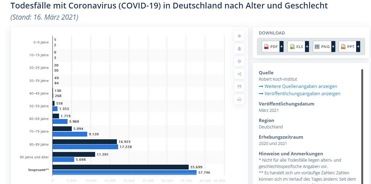 Stellen Sie sich vor, es gäbe eine Krankheit, an der in einem Jahr weniger als 0,1% der Bevölkerung sterben, wobei weit über 90% dieser Opfer alte und schwerkranke Menschen über 70 sind, was wiederum bedeutet, dass die Toten unter 60 Jahren weniger als 0,01% der Bevölkerung ausmachen.