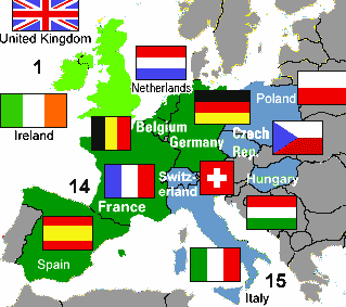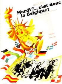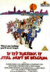 Was fällt Euch an dem Text auf, liebe Leser? Nun - er paßt gar nicht zum Film: Von Belgien aus reisen unsere Helden keineswegs gleich am nächsten Tag nach Rom; nach Montreal reisen sie überhaupt nicht - denn das liegt in Kanada -; und St. Paul's besuchen sie auch nicht. Aber was soll's, bei US-Amerikanern (und für die wurde der Film ja in erster Linie gedreht) darf man in Sachen Geografie eh nicht allzu viel voraussetzen, und bei Briten offenbar auch nicht. Und das französisch-sprachige Kino-Publikum glaubt man ebenfalls verarschen zu können, wenn man sich das Filmplakat anschaut: Von den zehn Ländern, deren Flaggen darauf abgebildet sind, wird genau die Hälfte nicht einmal erwähnt, geschweige denn bereist! (Dikigoros zählt sie nicht eigens auf; er traut seinen Leser zu, daß sie die mit Hilfe der beigefügten Europa-Karte selber heraus finden :-) Die polnischen Kinogänger werden dagegen nur in zwei Punkten belogen: 1. wird ihnen das Opus als englischer Film präsentiert, und 2. steht "Paris" auf dem Programm Bus. Und den persischen wird vorgespiegelt, daß dies eine Art Soft-Porno sei, mit Bettszenen und Mädchen, die im Bikini herum laufen.
