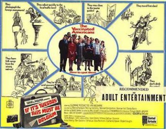 Wenn europäische Touristen in 18 Tagen durch die USA reisen, dann lernen sie dabei sicher viel mehr über Land und Leute als umgekehrt. Darf Dikigoros aus einem gängigen Prospekt zitieren: "Flug von Frankfurt nach New York City, weiter nach Washington, Miami Beach, Disney Word, New Orleans, Dallas, Los Angeles, San Francisco, Las Vegas, Salt Lake City, Yellowstone Park, Chicago, New York City und wieder zurück nach Frankfurt." Moment, fehlt da nicht so einiges? Ach was, zu mehr reicht die Zeit eben nicht; und wer so eine Reise gemacht hat - möglichst noch in einer schönen großen Gruppe kulturbeflissener Landsleute unter deutschsprachiger "Führung" - hat die Welt gesehen, wie man so schön sagt. Daß er sie verstanden - oder gar Verständnis für sie erworben - hat, behauptet ja niemand, und wie sagt der Italiener so schön: "Chi s'è visto s'è visto." Allerdings haben es die Amerikaner auch viel leichter als die Europäer, denn während es in den USA 50 Bundesstaaten gibt, gibt es - bzw. gab es 1968/69, als der Film gedreht wurde - in Europa nur rund halb so viele, und wiederum die Hälfte davon lagen jenseits des "Eisernen Vorhangs", hinter den Amerikaner ohnehin nicht reisten. (Und die Türkei und Israel zählten damals auch noch nicht dazu :-) Auch Skandinavien bleibt im Film außen vor - irgendwann unterhält sich ein Paar darüber, daß sie nächstes Mal dorthin reisen wollen. Auf der iberischen Halbinsel regieren dagegen zwei böse Diktatoren -