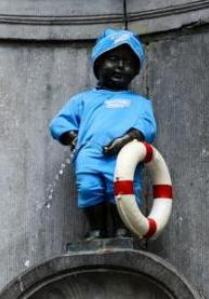 Aber welch merkwürdige Blüten dieser Schwachsinn bereits trieb konnte man gerade in Belgien an prominenter Stelle sehen, die unsere Reisenden schon im ersten Film kurz besucht hatten: am Brunnen mit dem nackten Manneken Pis. Just anno 1987 hatte die Brüsseler Stadtverwaltung ein paar hundert Meter weiter aus Gründen der "Gleichberechtigung" auch eine nackte