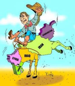Welche Konsequenzen das haben wird? Nun, genau die, die sie bisher vermeiden wollten: Sie werden auch den Iran angreifen müssen (dessen Atombombenbau einen prächtigen Vorwand, pardon Grund abgibt) und das persische Volk - das in seiner Mehrheit der Ayatollah-Herrschaft müde ist - von seinem radikal-shī'itischen Terror-Regime befreien; dafür werden einige zehntausend Mullah-Köpfe rollen müssen - was man den Exil-Iranern, die dann zurück kommen werden, getrost selber überlassen kann. Zur Belohnung wird der Iran die Provinz Basrā bekommen, pardon, infolge der selbstlosen Einführung der Demokratie und des Selbstbestimmungsrechts der Völker werden der Iran und die Provinz Basrā "wiedervereinigt" werden - so muß es politisch-korrekt heißen. Den Kurden wird man - mit der gleichen gut-demokratischen, "völkerrechtlichen" Begründung - endlich einen eigenen Staat geben müssen, der auch Teile der heutigen Türkei, des heutigen Syrien und des heutigen Iran umfaßt. (Glücklich werden sie damit ebenso wenig werden wie die deutschen Wessis und Ossis in ihrer endlich "wiedervereinigten" Groß-BRDDR, denn "die Kurden" bestehen aus zahlreichen Stämmen, deren Mundarten und Konfessionen sich weit mehr von einander unterscheiden als die der Preußen und Sachsen von denen der Bayern und Ostfriesen: sunnitische Schafi'iten, shi'itische Alewiten und jezidische Zarathustra-Anhänger würden einander am liebsten an die Gurgeln gehen, aus denen es mal Bahdini, mal Sorani, mal Zaza-Gorani gurgelt - Sprachen, die etwa so nah verwandt sind wie Deutsch, Dänisch und Englisch; "Kurdisch" gibt es ebenso wenig wie "Indisch" oder "Chinesisch"; und "Kurmanji" ist etwa so lebendig wie "Kirchenslawisch" oder "Mittelhochdeutsch".) Syrien wird man dafür mit der Provinz Baģdād entschädigen, die ja vom "Irāq" übrig bleibt und allein kaum überlebensfähig ist. Im Gegenzug wird Syrien den Libanon in die vollständige Unabhängigkeit entlassen müssen - wenn ihm das nicht paßt, muß auch das Regime in Damaskus gestürzt werden, notfalls mit militärischen Mitteln. Und wenn die Amerikaner gerade beim Großreinemachen sind, sollten sie die Verbrecher-Regime in Riyād und Kairo gleich in einem Aufwasch mit beseitigen, auch auf die Gefahr hin, daß dann radikale "Islamisten" versuchen könnten, dort die Macht zu ergreifen. Gegen die gibt es ein probates Mittel: den "big stick", mit dem die Amerikaner seit Teddy Roosevelt so gerne auf Reisen gehen. Und so werden letztlich die natürlichen Bausteine gesunder Staaten - Blut und Glaube (nein, liebe Neo-Nazis, nicht "... und Boden" - ein solcher Staat wäre dort in der Wüste im wahrsten Sinne des Wortes auf Sand gebaut :-) - über all die Hirngespinste von politischen Ismen, juristischen ("völkerrechtlichen") Spitzfindigkeiten und [wirtschafts-]kolonialen Interessen siegen, die man so oft wider bessere Einsicht gegen sie auszuspielen versucht hat, und die so viel Unglück über Millionen Menschen gebracht haben.