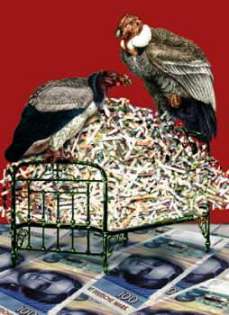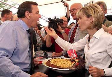 Der sollte sich lieber mal im eigenen Lande umschauen, denkt Dikigoros, um zu sehen, wie diese vollgefressenen weißen Politiker sowohl schwarzer als auch roter Partei-Couleur ihre eigenen Länder herunter wirtschaften. In der Ex-Hauptstadt haben sie längst fertig; in Dikigoros' Ortsteil hat gerade die vorletzte Buchhandlung dicht gemacht, das vorletzte Kino und die letzte Videothek - mit Büchern und Filmen ist kein Umsatz mehr zu machen, geschweige denn Gewinn. Auch das einzige Internet-Café gähnt vor Leere, seit die Preise im Verhältnis 1:1 von DM auf Teuro umgestellt worden sind - ganz so blöd sind die Leute doch nicht, daß sie das nicht merken würden... In den letzten zwölf Monaten haben drei kleinere Computer-Läden dicht gemacht - Aldi ist billiger. Nur für einen der drei hat sich ein Nachmieter gefunden: ein Bestattungs-Institut - das ist praktisch, da könenn sich alle Pleitegeier, die einen Strick genommen haben, gleich beerdigen lassen. Im ehemaligen Modeladen mit teuren Markenklamotten sitzt jetzt eine "Änderungs-Schneiderei". (Die Inhaberin darf sich aus juristischen Gründen - sie kommt vom Balkan und hat deshalb keine in Deutschland anerkannte Meisterprüfung - nicht als "Schneiderei" bezeichnen.) Das Postamt bietet freie Schließfächer an, zum ersten Mal seit die Anlage vor vielen Jahren eingerichtet wurde (damals gab es lange Wartelisten); ein schlechtes Zeichen, denn es ist ein Gradmesser für das Gewerbesterben im Zustellbezirk. Ein anderer Gradmesser ist der Autohändler neben dem großen Billig-Supermarkt. (Der letztere floriert prächtig - Dikigoros sieht dort immer häufiger Frauen von Kollegen einkaufen, die noch vor nicht allzu langer Zeit die Nase zu rümpfen pflegten ob solchen "Geizes". Und Samstags um 16 Uhr auf dem zu Ende gehenden Wochenmarkt, wo sich früher allenfalls ein paar alte Türkinnen blicken ließen, um die letzten Auberginen und Paprikaschoten zum Sonderpreis abzustauben, stehen sich heute deutsche Hausfrauen dicht gedrängt auf den Füßen herum wie sonst nur beim Winterschlußverkauf - dabei sind da längst keine echten Schnäppchen mehr zu machen, denn auch die Händler haben nichts mehr zu verschenken: Was nicht bis zum Montag garantiert vergammelt ist, wird wieder eingepackt und mitgenommen. Auch das neue Call-Center für Leute, die sich kein eigenes Telefon mehr leisten können - die Telekom hat alle öffentlichen Telefonzellen im Ortsteil abgebaut -, und der neue Waschsalon für Leute, die sich keine eigene Waschmaschine mehr leisten können, sind immer gut besucht.) Dort stehen neuerdings Dutzende gebrauchter Geschäftswagen herum, feine Schlitten, Mercedes 500 SL und SEL, z.T. so gut wie neu, zwischen 10 und 20 Mille, also fast geschenkt, ohne Anzahlung, in bequemen Monatsraten abzustottern bei niedrigen Zinsen, mit großzügiger Garantie; aber niemand will sie haben, denn Kfz-Steuern und Versicherungs-Prämien sind so hoch, daß man sie sich nur als Geschäftsmann leisten kann - und da müßte erstmal ein entsprechender Umsatz vorhanden sein, von dem man sie absetzen könnte. Allenthalben ist Leerstand an Laden- und Büroflächen im schlimmsten Flut-Sommer seit vier Jahrzehnten (damals ging Hamburg unter - nicht nur in Afrika gibt es Natur-Katastrofen, Frau Baronin Blixen, es kommt halt darauf an, wie die Menschen damit umgehen!), und die letzte Kneipe auf der Hauptstraße, die sich noch hält, wird wohl auch bald dicht machen. (Wer soll denn für ein Glas Weizenbier 2,90 Teuro zahlen, wenn die Dose 100 m weiter im Supermarkt 29 Cent kostet?).