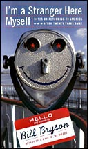 Inzwischen hatte Bryson seine Notizen von 1989 umgearbeitet zu fiktiven Briefen an seine Familie (die noch ein Jahr länger in England blieb, bevor er sie in die USA nach holte), die allwöchentlich in einer Sonntagszeitung erschienen. Sein britischer Verleger überredete ihn, diese Aufsätze noch ein weiteres Jahr fortzusetzen und versprach ihm, daraus ein Buch zu machen. Es erschien zunächst unter dem Titel "Notizen von einem großen Land", und seine britischen Leser lachten herzhaft über die wiederum sehr humorvoll geschilderten Schwächen ihrer Vettern jenseits des großen Teiches. Sie lachten immer noch, als Bryson - gewissermaßen als Kontrastprogramm - die "Notizen von einer kleinen Insel" veröffentlichte, in denen auch England sein Fett weg bekam, wenngleich mit britischem Humor: "Manches dort ist so schrecklich, daß es schon wieder lustig ist," bemerkte Bryson biestig, vom Essen über die schlechten Filme und die albernen Straßennamen bis zu den Klamotten. ("Die Briten laufen herum wie Ossis!") Nein, die Briten nahmen es ihm nicht krumm, sie wollten einfach nicht glauben, daß ihr Wahl-Landsmann das etwa böse meinte; das Buch verkaufte sich gut bei ihnen (was man von der deutschen Übersetzung - "Reif für die Insel. England für Anfänger und Fortgeschrittene" - nicht gerade behaupten kann). Dabei brauchte man nur zwischen den Zeilen (und in einigen Interviews) zu lesen, daß es Bryson durchaus ernst war mit der Kehrtwende: Plötzlich wollte er seine Rückkehr aus der "verkrusteten" britischen Gesellschaft in die "dynamischere" der USA dahin gehend interpretiert wissen, daß sein Verhältnis zu England schon immer zwiespältig gewesen sei und er sich seinerzeit nur aus "purer Verzweiflung" dort nieder gelassen habe. Und weil die "Notizen von einem großen Land" in England - und im ganzen Commonwealth - ein solcher Erfolg geworden waren, beschloß er, sie auch in den USA heraus zu bringen - freilich unter anderem Titel und mit anderem Inhalt. Später verriet er in einem Interview, wie sich das abspielte: Er hatte seinem britischen Verleger die Reportagen der ersten anderthalb Jahre zur Auswahl überlassen, und der hatte daraus die "Notizen" zusammen gestellt. Sein amerikanischer Verleger bekam die ganze Sammlung aus zwei Jahren; der konnte also, bei gleichbleibendem Umfang, ein Viertel heraus streichen. Das tat er denn auch; er merzte rigoros alles aus, was in den USA irgendwie hätte Anstoß erregen können - darunter, so Bryson, mit die besten Teile - und verpaßte dem ganzen auch einen neuen Titel: "Ich bin hier selber ein Fremder" (Standard-Antwort auf alle, die Bryson in den USA nach dem Weg fragten). Kein Wunder, daß er damit in den USA großen Anklang fand; selbst seine einstigen Kritiker sahen plötzlich nur noch seinen "goldigen Humor" und fanden "viel weniger spitze Bemerkungen als in seinen früheren Büchern". Nun, Literatur-Kritiker sind halt keine Juristen oder Ärzte; vielleicht stört es sie deshalb nicht, wenn Bryson diese Berufsstände auf die Schippe nimmt... "Charmant", ja "süß" nennen sie die Schriften des einstigen "Mr. Bitterman" jetzt - eine merkwürdige Verschiebung der Wahrnehmungs-Perspektive!