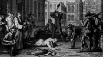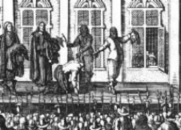 30. Januar 1649. Das Schafott, auf dem die Monarchie zu Grabe getragen wird. Charles geht, nachdem er sich von dem Rest seiner Familie verabschiedet hat, gefaßt in den Tod, pflaumt sogar noch den Henker an: "Warum habt Ihr Euch denn maskiert? Ihr habt wohl Angst, Euren König zu töten?!"
