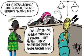 (Anm. Dikigoros: Das ist in anderen Ländern noch viel schlimmer. In Schweden überfiel vor Jahr und Tag eine Horde illegaler muslimischer Immigranten ein junges Mädchen und versuchte, es zu vergewaltigen. Das war jedoch nach Auffassung der Justiz als "kulturelle Eigenart" hinzunehmen. Dagegen wurde der Versuch des Mädchens, sich mit Hilfe von Pfefferspray zur Wehr zu setzen, als "gefährliche Körperverletzung aus rechtsextremistischen Motiven" gewertet, und sie erhielt eine Gefängnisstrafe - wäre sie nicht minderjährig gewesen, hätte es lebenslänglich sein können.