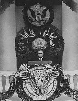In this speech, President Roosevelt first tries to calm the fear gripping Americans, then outlines some of the "lines of attack" to be immediately taken in the days and weeks ahead.