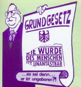 12. Antwort: Ich weiche Ihnen nicht aus. Sie verstehen unsere Familienordnung nicht, weil Sie selber keine intakte mehr haben. Sie glauben, daß der Staat so ohne weiteres an deren Stelle treten kann. In Ihrem Grundgesetz steht, daß der Staat von der Wiege bis zur Bahre alles überwacht: von der Erziehung in Kindergarten und Schule über das Zusammenleben in Ehe und Familie, Arbeit und Rente, bis zur Beerdigung und Friedhofsordnung. Aber dieses System hat sich nicht bewährt, Sie sehen doch, daß es nach gerade mal etwas mehr als hundert Jahren vor dem Zusammenbruch steht. Und wenn Sie dann keine Familienstrukturen mehr haben, die das auffangen können...