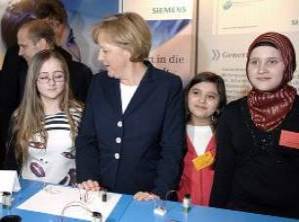23. Nachfrage: Da tun Sie Frau Merkel aber bitter Unrecht - die ist eine große Türkenfreundin und freut sich über jede Frau, die ein Kopftuch trägt, auch und gerade in Deutschland - wo es doch in der Türkei verboten ist! Wahrscheinlich würde sie selber eines tragen, wenn sie jetzt nicht so eine schicke neue Frisur hätte! Und ganz besonders freut sie sich, wenn schon kleine Mädchen bei uns mit verhülltem Haupt herum laufen, was es nicht mal in Ländern gibt wie Afģānistān, wo für erwachsene Frauen der Tschādår Pflicht ist.