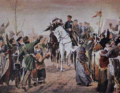 ![[Siegesmeldung an Friedrich Wilhelm III von Preußen nach der Völkerschlacht bei Leipzig, Gemälde von Johann Peter Krafft]](krafftsiegesmeldung.jpg)