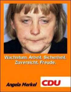 etwa Stasi-Mitarbeiter, unbehelligt in den Ruhestand getreten. (Auf Wunsch wurde ihnen die Knete sogar bis nach Chile nachgeschickt.) Die SED besteht - unter anderem Namen - weiter, ihre Abgeordneten sitzen im Bundestag und in mehreren Landesregierungen; eine Ex-DDR-Bürgerin ist CDU-Vorsitzende und Bundeskanzlerin und schlägt als solche alle Negativ-Rekorde, einschließlich die von ihrem Protektor