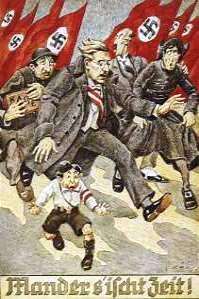 Wenn man das denn politisch interpretieren will, d.h. als Rand des politischen Spektrums, dann muß man fragen: Warum? Vielleicht, weil er im gemeinsamen Turnen etwas Völkerverbindendes sah - und das war und ist den Verbrecherregimes, die damals wie heute nicht nur über Mitteleuropa herrschen, ein Dorn im Augen. Denn wer Sport mit einander treibt, der führt keine Kriege gegen einander - und wo wären dann Typen wie die beiden unten abgebildeten? Vermutlich würden sie baumeln, solange es noch Bäume gibt; und ihre Kadaver würden auf dem Müllhaufen der Geschichte vermodern. Aber das ist wie gesagt nur eine Vermutung, liebe zurück zu Von Olympia nach Athen |