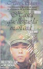 Das ist Multi-kulti, liebe Leser, und glaubt bloß nicht, daß sich daran bis heute etwas geändert hätte. Welches Loyalitätsgefühl soll denn z.B. ein Türke mit "Doppelpaß" gegenüber der BRD haben? Wem schuldet er etwas, wenn nicht seiner Familie, seinem (türkischen) Volk und seiner (islamischen) Glaubensgemeinschaft? Was ist die BRD? Ein Staat? Was ist das? Ein System, das sich ein paar korrupte Partei-Politiker unter den Nagel gerissen haben, die ihm ein Stück Papier ausgestellt haben, das ihn als Bestandteil dieses Systems ausweist? Ja, und dafür schuldet er ihnen alle vier Jahre ein Kreuzchen bei rot oder grün, und das sollen sie haben - mehr aber auch nicht. Insbesondere haben die kein wie auch immer geartetes "Recht" ihm dabei reinzureden, wie er seine Frau und seine Kinder, vor allem seine Töchter erzieht, nämlich zu anständigen Menschen, d.h. guten Muslimen. Schon gar kein "moralisches" Recht - diese Hurenböcke regen sich über von den Eltern vermittelte Ehen und bis zu vier Ehefrauen auf; aber sie selber sind durch die Bank mehrmals geschieden und wieder verheiratet, und nebenbei haben sie noch Dutzende Maitressen; und sie bezeichnen die private Hinrichtung von Ehebrecherinnen und unehelichen Müttern zur Wahrung der Familienehre als "Mord"; aber sie selber treiben die meisten ihrer Kinder ab - selbst die ehelichen -, d.h. sie genügen nicht mal den laxen moralischen Maßstäben ihrer eigenen, christlichen Religion, und so etwas wie Ehre haben sie auch nicht - sie wissen gar nicht, was das ist... (Wollt Ihr diese Einstellung, diese Gedankengänge ändern, liebe Leser, etwa durch "Integrations"-Bemühungen? Hütet Euch - Ihr werdet damit nur erreichen, daß die solchermaßen Belästigten und Bedrängten eine eindeutige Wahl treffen - und die kann nur lauten: 150%ige Türken und Islamisten zu werden! Und das gilt nicht nur für türkische, sondern auch für andere ausländische "Mitbürger", insbesondere für alle anständigen Muslime.) Nein, eine Partei kann man wählen, seine Staatsangehörigkeit neuerdings auch; seine Kultur- und Volkszugehörigkeit aber - die sich aus Vaterland und Muttersprache zusammen setzt - kann man sich ebenso wenig aussuchen wie Vater und Mutter. Was aber, wenn Vaterland und Muttersprache auseinander fallen? (Diese Frage wollt Ihr bitte im Doppelsinn auffassen, liebe Leser - denkt an "Jugo-Slawien" und "Serbo-Kroatisch"!) Dann muß man halt doch wählen, und diese Wahl ist ein schmerzliches Entweder-oder, das hat Han Su-yin vor 1981 noch in jedem ihrer autobiografischen Romane ausdrücklich betont. Beides zugleich geht nicht, und Halbe-halbe auch nicht. Sie selber hatte ihre Wahl spätestens getroffen, als sie aus England nach China zurück kehrte: Sie wollte keine halbe Lolo und keine halbe Belgierin sein, sondern eine 150%ige Han-Chinesin - aber diese Wahl der dritten Ecke wäre in einer Zeit, da allenthalben "Multi-kulti" propagiert wurde, nicht mehr so gut angekommen; daher ihr verlogener Versuch, sich als glückliche Mischung zweier Rassen, Völker und Kulturen darzustellen, denen sie in Wahrheit nicht nur nicht zur Hälfte, sondern gar nicht angehörte, nämlich der chinesischen und der - englischen! Jawohl, im bürgerlichen Leben führt sie noch immer den Nachnamen ihres zweiten Ehemannes, dazu den falschen Dr.-Grad aus London und ihren dritten - ebenfalls englisch klingenden - Vornamen: "Dr. Elisabeth Comber". Wahrscheinlich lebte Han Su-yin längst in einer selbst konstruierten Traumwelt, denn zur gleichen Zeit schrieb sie an dem zweibändigen Roman "Bis der Morgen kommt", einer fiktiven Lebensgeschichte, wie sie sie so oder ähnlich vielleicht ihrer Mutter und ihrem Vater - oder sich selber und Tang Pao-huang gewünscht hätte: Reiche Ausländerin heiratet braven Rot-Chinesen und wird, allen Widerständen zum Trotz, mit ihm und ihrem gemeinsamen Sohn in der Volksrepublik glücklich. Dikigoros verzichtet darauf, diese Traumtänzerei weiter zu kommentieren; erfreut Euch an den hübschen Umschlagsbildchen und achtet vor allem auf das einzige ehrliche - das auf der spanischsprachigen Ausgabe.