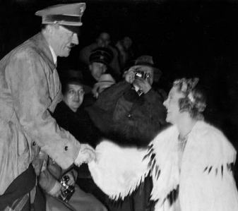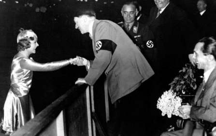 - (Das Foto wird meist fälschlich auf Februar 1936 datiert und mit den Olympischen Spielen von Garmisch-Partenkirchen in Verbindung gebracht, auch und gerade von ihren Apologeten, die vergessen machen wollen, daß sie schon längst davor in "Nazi-Deutschland" auftrat und keine Berührungsängste mit dessen Politikern hatte.)