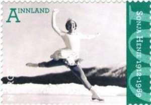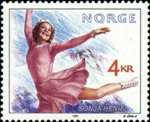 - Zu Henies 100. Geburtstag widmet ihr die norwegische Post zwei Briefmarken à 100 Øre - ihr amtlicher Wert scheint binnen weniger als einem Vierteljahrhundert um drei Viertel gesunken zu sein.