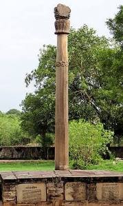 Marshall und seinen Zeitgenossen wird von ihren heutigen Epigonen immer wieder der Vorwurf gemacht, sie hätten archäologische Fundstücke "unsachgemäß" restauriert, statt sie in ihrem ursprünglichen Zustand zu belassen. Das mag in Einzelfällen zutreffen, aber nicht grundsätzlich. (Manchmal hat Dikigoros den Eindruck, daß seine Zeitgenossen bloß neidisch sind, weil sie dadurch selber weniger Entdeckungen am Objekt machen und so weniger persönlichen Ruhm ernten können :-) Solche Inschriften wurden schließlich angebracht, damit die Nachwelt sie lese; und ohne Marshalls Aktion wüßten wir bis heute nicht, woher und von wem die Säule stammte und was uns ihr Stifter sagen wollte. Jetzt ist die Säule frei zu besichtigen, und an ihrem Fuße stehen Tafeln mit Übersetzungen der Inschrift in Hindi, Urdu und Englisch. ***Manche Verlage nehmen es mit der Transkription noch genauer als Dikigoros. Es gibt im Indischen zwei "sch[a]" und zwei "n[a]", die sich für unsere Ohren nicht unterscheiden. Die ersteren schreibt er "sh" und "sch", die letzeren unterscheidet er nicht. Auf dem Buchcover wird das Schlingen-n in "Sānchī" - im Gegensatz zum Nasen-n - mit Oberstrich geschrieben. (Man kann freilich streiten, ob das korrekt ist; denn ursprünglich schrieb es sich mit keinem von beiden "n", sondern nur mit einem Anuswar [Nasalierungspunkt] über dem langes "a" ;-)